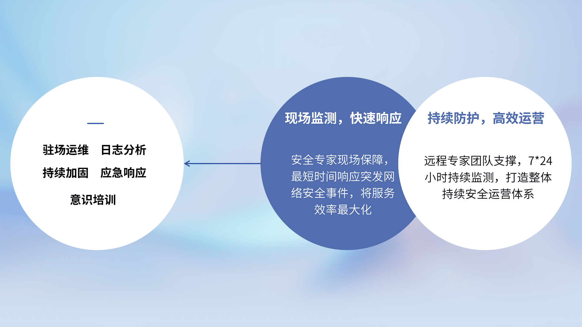 针对客户行业特性,,提供专属的一站式安全管理服务,,帮助客户全面感知网络空间威胁,,,,通过安全专家的线上、、、、线下防护支持,,,,实现风险闭环,,,将安全保障常态化,,,,为客户打造常态化安全运维运营服务。。